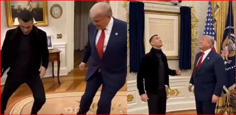 अमेरिकी राष्ट्रपति डोनाल्ड ट्रंप ने क्रिस्टियानो रोनाल्डो के साथ ...