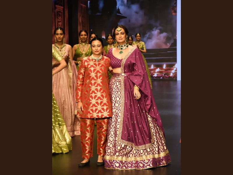 Dia Mirza made a stunning appearance as the showstopper for fashion designer Chaulaz Heritage at the Bombay Times Fashion Week 2024. The actress gracefully walked the ramp, captivating the audience with her elegance and charm.
